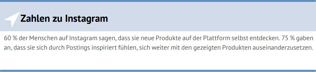 Es ist sicher nicht unmöglich, Anzeigen von Kippschaltern oder einem Schraubenset erfolgreich bei Instagram zu vermarkten, vor allem, da das Interesse ja schon vom Nutzer gezeigt wurde. Die Anzeigengestaltung des Produktsets fordert dann allerdings eine sehr ausgefeilte Darstellungsstrategie. Möglich wäre es zum Beispiel, Produkte direkt in einer Nutzungssituation zu zeigen und hier den Fokus auf die positive Wirkung zu setzen. Im Kern bleibt Instagram aber sicher für visuell starke Produkte aus Lifestyle, Fashion oder Fitness ein einfacher zu bespielender Kanal – und das auch im Werbebereich.